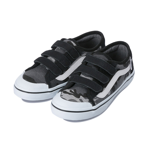 VANS【ヴァンズ】よりキッズモデルのスニーカー。アッパーはベルクロでつま先部分にトゥラバーを採用し、ブラックをベースにしたカモ柄モデル。シューズの製法上、接着剤の付着や縫製のズレ・歪みがある場合がございますが、不良品ではございませんので予めご了承ください。素材=合成繊維等 エービーシー・マート/ABCマート VANS|シューズ|スニーカー