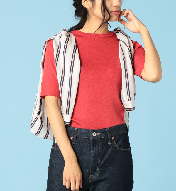 ▼ドライなタッチは今の時期にぴったり▼光沢感のある上品な質感!サラッとした着心地で今から秋まで長くお使いいただけます◎五分袖まである袖丈は気になる二の腕もカバー♪コンパクトなシルエットはボトムにインしてもアウトで着てもバランス良く着用できます。合わせやすい落ち着いたトーンの4色展開! ドゥアルシーヴ/Doux archives Doux archives|トップス|ニット・セーター