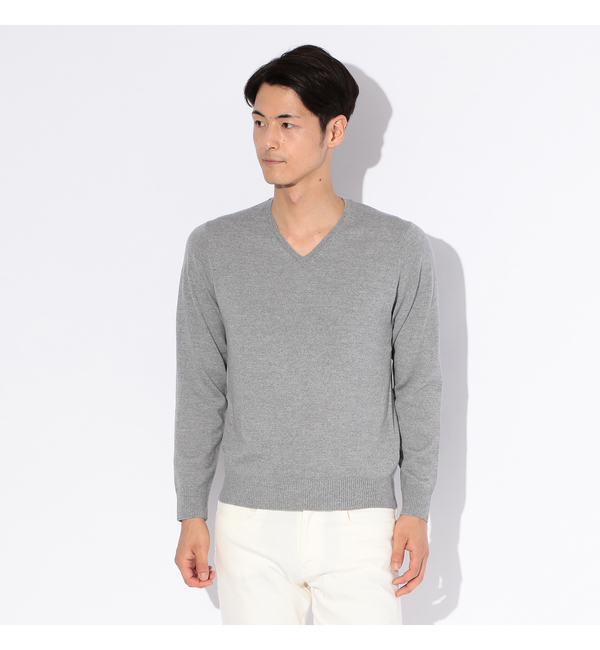 キャッシュウール天竺 Vネックプルオーバーニット