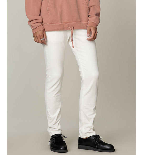 Lee×ナノ・ユニバースによる別注スキニーボトムス やや細畝のストレッチコーデュロイを使用しています。タイトなスキニーシルエットながら、ストレッチが効いているので穿き心地に窮屈さを感じさせません。ボタンやラベルなどを黒で統一し、アメカジにもロックテイストにも、きれいめな大人カジュアルにも穿きこなせるアイテムに仕上げました。製品染めによるナチュラルなユーズド感も特徴です。 ナノ・ユニバース/nano・universe nano・universe Mens|パンツ|その他
