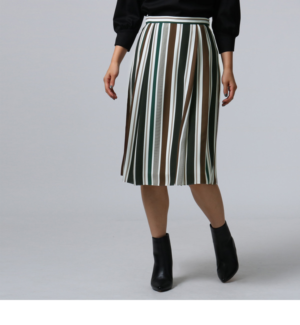 秋らしいクラシカルなマルチカラーのストライプ柄が魅力のタックスカート。ウエストベルトとスカート部分でストライプの方向を変えることでニュアンスのある表情感を添えました。シンメトリーにタックを入れることで上品さの中に動きを感じるデザインに仕上げています。サイズ違いの商品もご用意しております。L:153ー75905主に秋に着用いただける商品です。 アンタイトル/UNTITLED UNTITLED|スカート|スカート