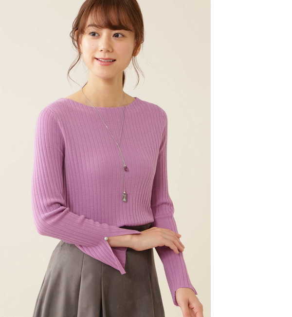 極細で艶感があり、上品な発色が特徴の上質なウールを使用しています。袖口にスリットを入れさりげなくパールボタンを効かせた針抜きプルオーバーです。クラシカルな印象でレディーライクなスタイリングをつくります。スカーフをプラスすると華やかなオフィススタイルに仕上がります。 ナチュラルビューティー/NATURAL BEAUTY トップス|ニット・セーター