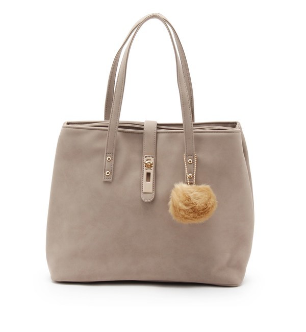 シーズンのトレンドアイテム、フェイクファーのボンボンチャームがセットになったトートバッグ。3層に分かれた収納は荷物を整理しやすく、横幅が広すぎないのがポイントです。非常に軽量でさっと持ち歩けるのがうれしい!外側ポケット×1、1内側ポケット×3 中国製 シューラルー/SHOO・LA・RUE DRESKIP / FASHION GOODS|バッグ|トートバッグ