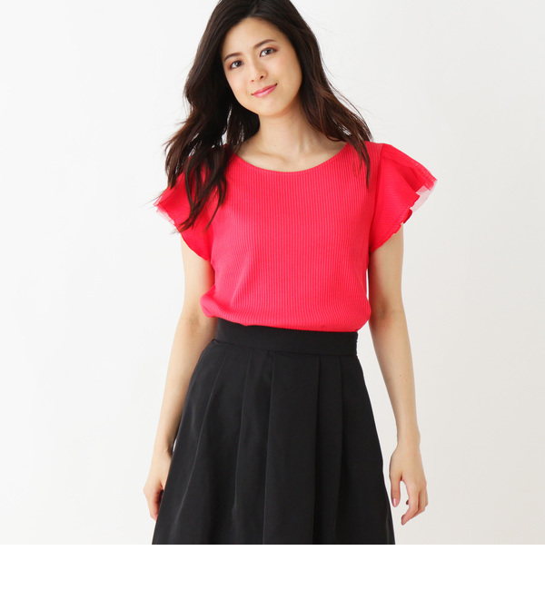 チュールを重ねたフレンチスリーブが今年らしさを演出するカットソー。目のきれいなテレコ素材だから、肌にべたつく感じが少なく夏でも着心地がよいのが魅力です。裾がシンプルなので、オーバーでもインでもスタイリングできます。※ホワイト系(002)は透け感があるため、インナーの着用をおすすめします。主に夏に着用いただける商品です。 中国製 オペークドットクリップ/OPAQUE.CLIP OPAQUE.CLIP|トップス|Tシャツ・カットソー