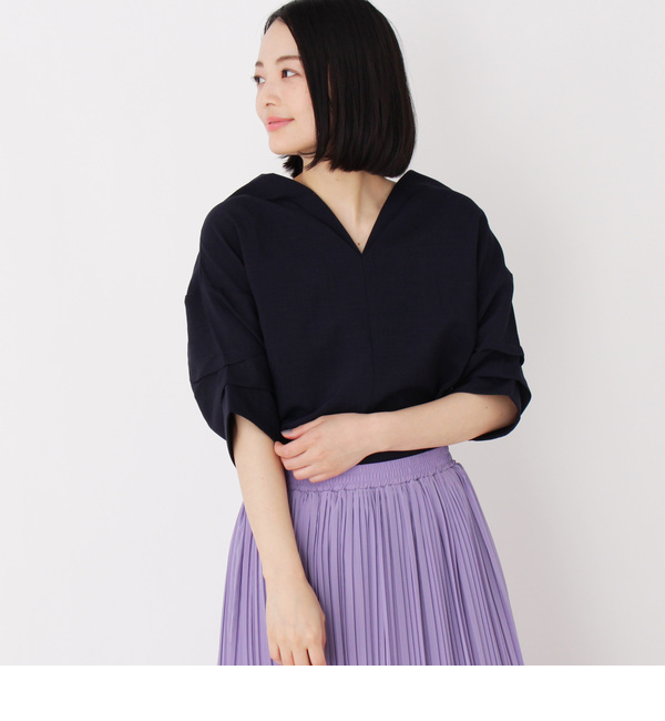 袖に施したタックがポイントになったプルオーバーブラウス。美しい曲線を描くVネックから、バックにギャザーを寄せた抜け襟が印象的です。ボトムを選ばず、着るだけでニュアンスのある大人スタイルを叶えてくれる技ありの一枚。主に秋に着用いただける商品です。 中国製 イッツデモ/ITS’DEMO ITS'DEMOAP|トップス|シャツ・ブラウス