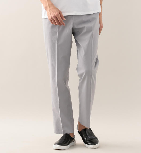 <ナチュラルな風合いとマルチファンクションを兼ね備えたイージートラウザーズ>【デザイン】ややゆとりのあるテーパードシルエットのドレスパンツをベースに、ウェスト1周ゴム仕様にした、今の気分を体現するイージートラウザーズ。ストレスフリーな着用感とトラウザーズの上品な顔を併せ持った1品です。カジュアルになり過ぎない、きれいめイージーパンツとしてオススメです。【素材】3種類のポリエステル糸を使い、天然素材のようなナチュラルな風合いを再現したオリジナルクロス。ストレッチ、シワになりにくい、洗濯後乾きやすい(綿素材との比較)などのマルチファンクションを備えた機能性素材です。モデル(下部ディテール画像):H185 C88 W73 H96 着用サイズ:40 マッキントッシュフィロソフィー ・ エムピーストア/MACKINTOSH PHILOSOPHY ・ MP STORE MACKINTOSH PHILOSOPHY|パンツ|スラックス