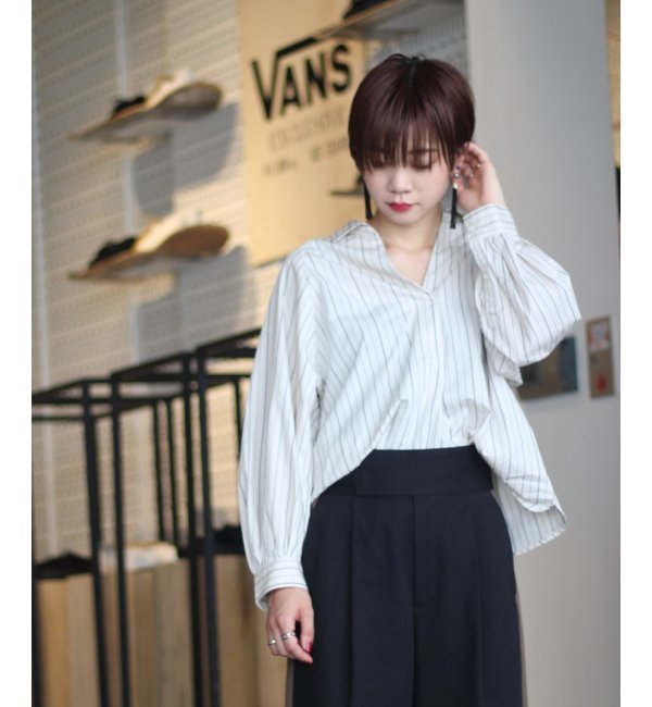 【2018AW】 JOINT WORKSスキッパー型ショートブラウス。程よく開いたネックは鎖骨のラインをきれいに魅せてくれる女性らしいポイント。 抜き襟仕様でトレンド感をプラス。シンプルなパンツと合わせても一枚でコーデが決まります。 今季注目のチェック柄のブラック、ストライプの入ったベージュ、大人カジュアルに最適なキャメルの3色でご用意いたしました。 ご家庭で手洗いが出来るのでデイリー使いにぴったりの1枚です! ※取り扱いについては、商品についている品質表示でご確認ください。モデルサイズ:身長:165cm バスト:80cm ウェスト:58cm ヒップ:85cm 着用サイズ:フリー 本体:手洗い可能、配色製品 ジョイントワークス/JOINT WORKS JOINT WORKS|トップス|シャツ・ブラウス