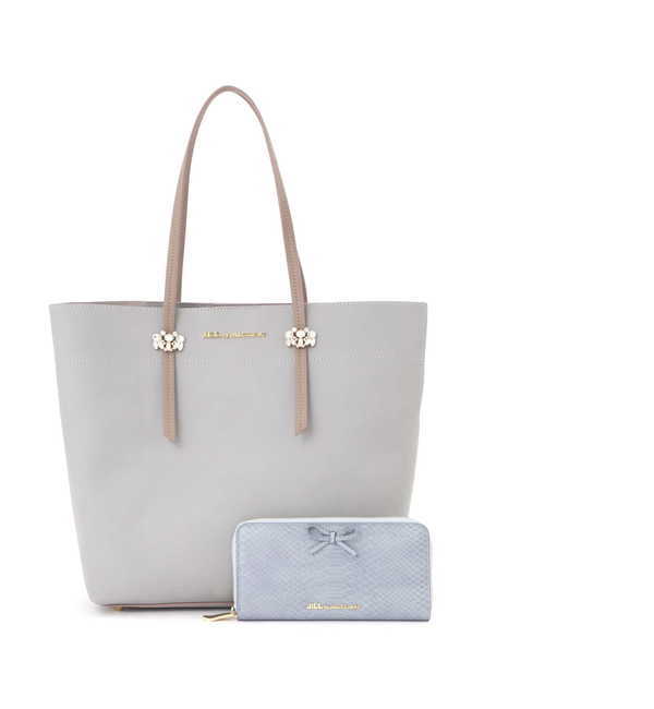 デイリーユースに最適なバッグ&長財布がセットになったアイテム!シンプルなトートバッグは、持ち手の付け根につけたビジュー調が華やかなポイントに。マチが広く中に小物ポケット付き。底びょうも付いており、きちんと感のあるデザイン。長財布は、カード8枚、紙幣やチケット、ファスナー開閉のコインケース有り。一度に中身が見える、仕切り上手なデザインです。バッグに合わせた長財布はカラーにより柄が異なります。 ※商品の撮影はサンプルで行っている為、カラーやサイズ等に変更がある場合がございます。予めご了承ください。 ※人物着用の画像は、光の当たり具合や撮影環境により、色味が違って見える場合がございます。正しい色味は物画像または、トルソー画像の色味をご参照ください。 ジル バイ ジルスチュアート/JILL by JILLSTUART バッグ|その他