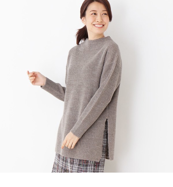 モヘヤウール混モックネック畦ニット