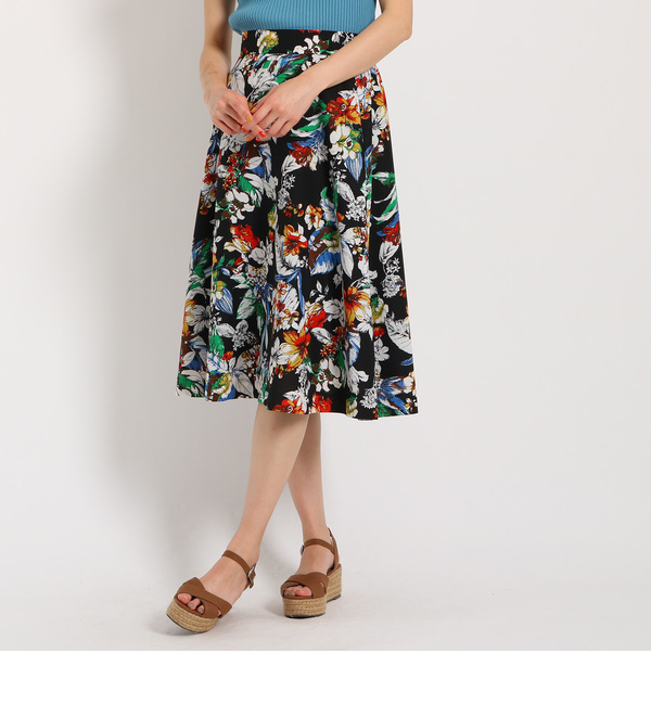 鮮やかな手描き風フラワープリントが存在感を放つスカート。フロントにはギャザーを寄せず、上品なイメージに仕上げた1枚です。優しいタッチの柄で柔らかく優しい、女性らしさ溢れる雰囲気を演出してくれます。同布を使用したワンピース(C12ー54042)もございます。主に夏に着用いただける商品です。 中国製 AG バイアクアガール/AG by aquagirl AG by aquagirl|スカート|スカート