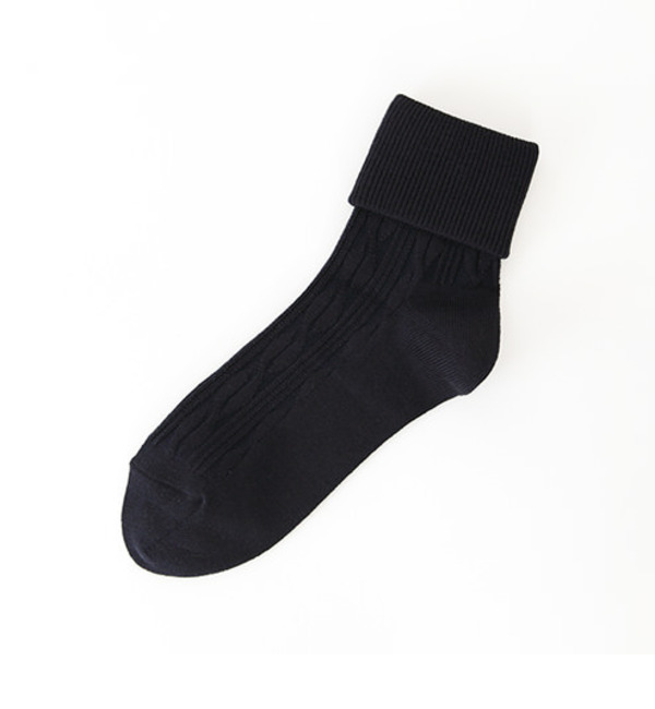 縄柄の三つ折りソックスです。 程よいボリューム感の折り返し部分と、丈のバランスが足首を細く見せてくれます。 カジュアルからキレイめまで、様々なスタイルに合わせていただけます。 柔らかい毛混素材を使用しておりますので、チクチクせず滑らかな履き心地です。 クツシタヤ/靴下屋 靴下屋|靴下・タイツ|ソックス